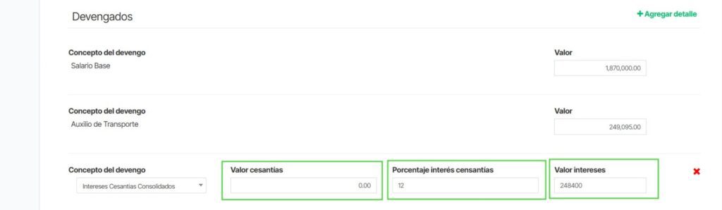 ⚠️ Importante: En este concepto no se debe registrar el valor total de las cesantías, solo el valor correspondiente a los intereses.